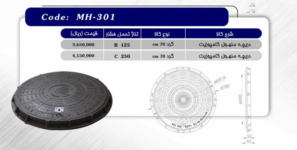 یکی از پرکاربردترین انواع دریچههای منهول دریچه منهول کامپوزیت گرد 70 سانتی است که برای دسترسی به تاسیسات زیرزمینی استفاده میشود.